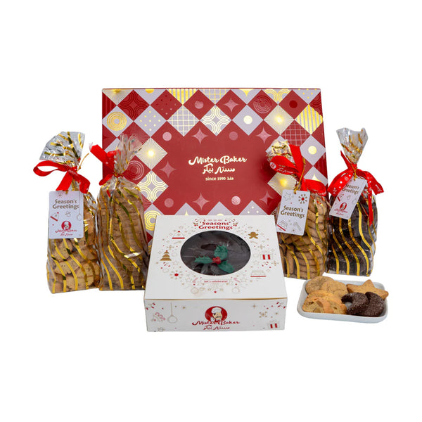 All your holiday favorites in one big festive box, plum cake, mince pie, and Christmas cookies for the sweetest celebration! Hamper Content : 1 plum cake 550gm, 1 brunsli cookies, 1 mince pie 3pcs, 1...