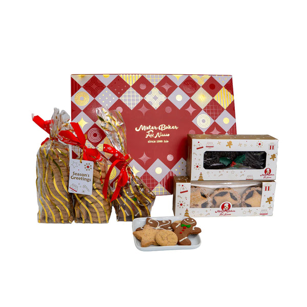 A merry mix of plum cake, mince pies, festive cookies, and holiday favourites — the perfect Christmas treat box. Hamper Content : 1 550gm plum cake, 1 mince pie 3pcs, 1 ginger cookies, 1 vanilla...