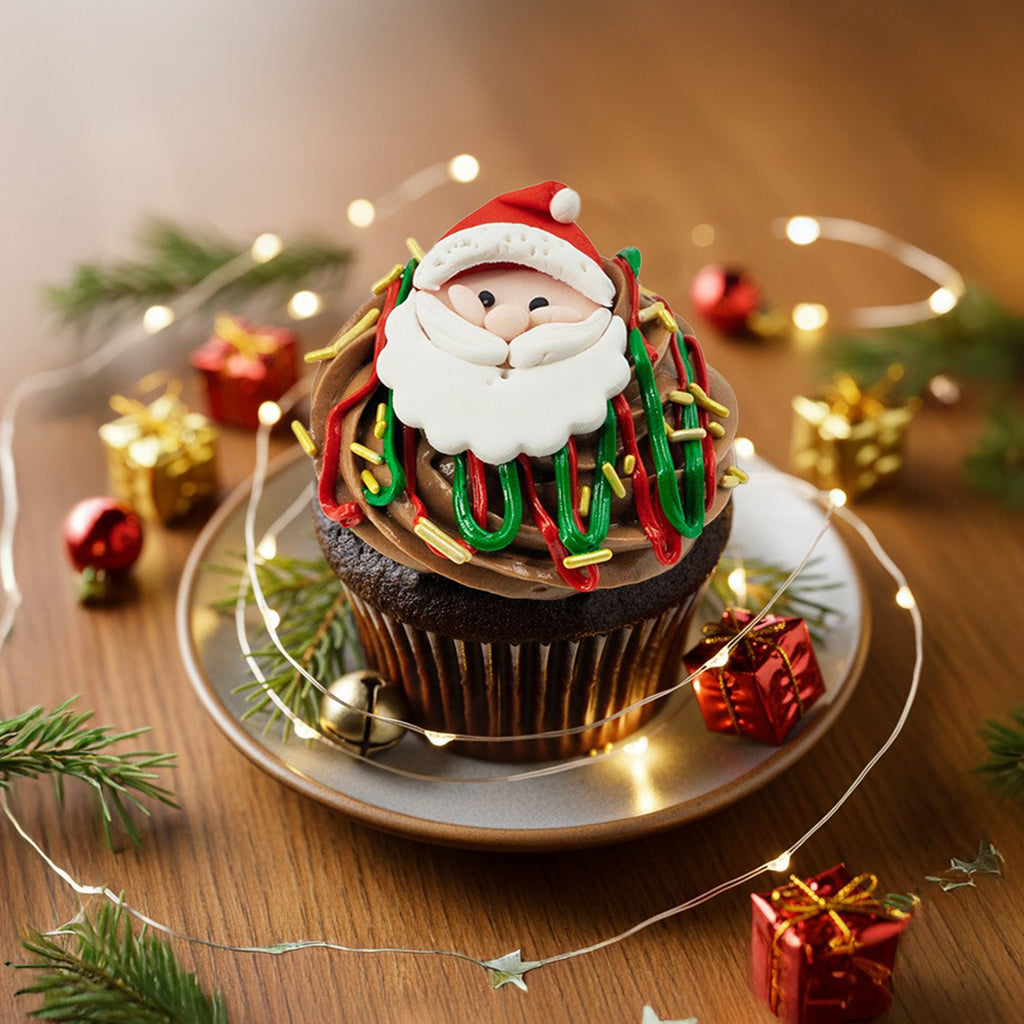 A Chocolate cupcake jolly and sweet—topped with Santa’s cheerful face for the perfect festive treat! Price per single pc.