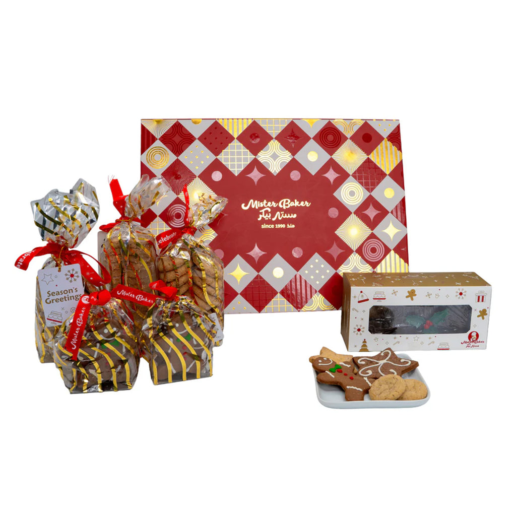 Plum cake and all your favorite festive cookies in one merry hamper Hamper Content : 1 550gm plum cake, 2 ginger cookies, 2 gingerbread man and star cookies, and 1 vanilla star cookies.