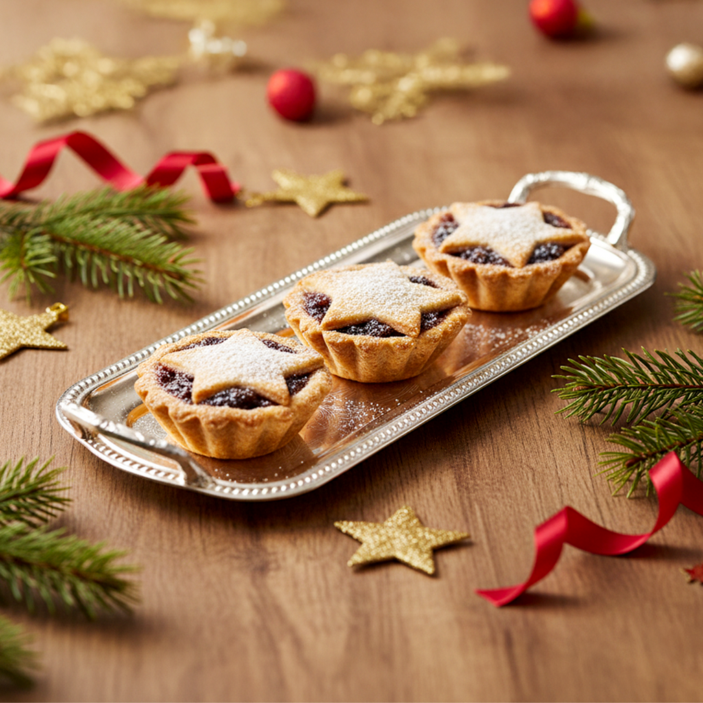 Traditional mince pies with a flaky crust, and a moist mince filling of soaked fruits and nuts - price per single piece
