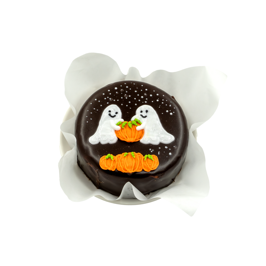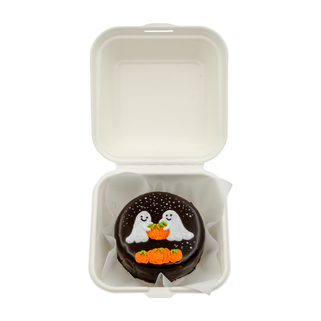 Ghosts & Pumpkin Bento Cake – a charming Halloween treat featuring playful ghosts and a festive pumpkin!