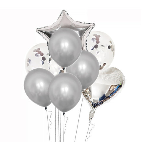 SILVER CONFETTI BALLOON SET FOR SPECIAL OCCASIONS Confetti Balloon Set (2pcs 18" foil balloons 4pcs 12" latex balloons 2pcs 12" confetti balloons )