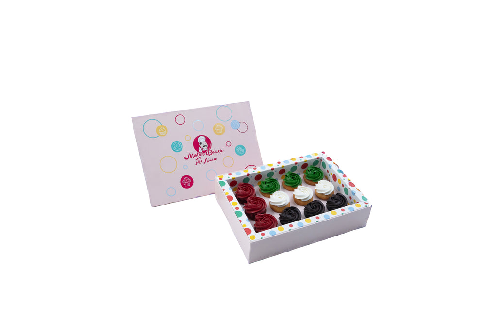 Celebrate the spirit of the UAE with our Flag Day Mini Cupcakes (12 pcs) soft, bite-sized delights topped with vibrant red, green, white, and black swirls that honor the colors of the nation.