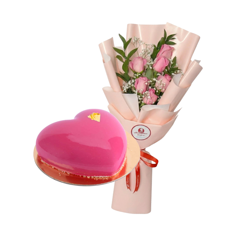 Make this Mother’s Day extra special with the “Pink Heart Mousse Cake” and 6 soft pink roses, double the roses, double the love, perfectly paired for your mom.850 GMS | 6 Pcs flowers